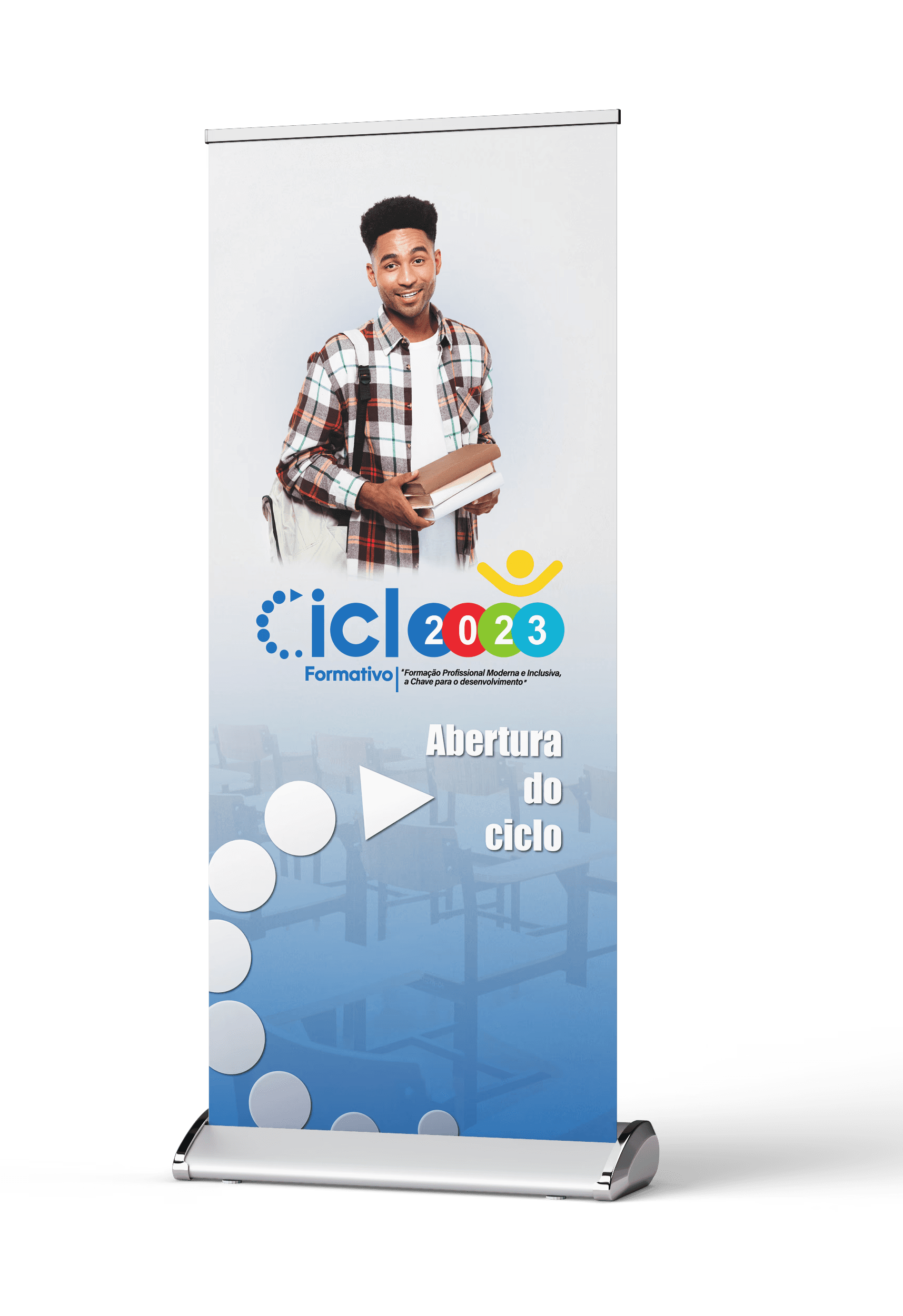 Desenvolvimento de peças gráficas institucionais voltadas para a comunicação do retorno das aulas, com foco em clareza visual e fácil compreensão das informações. Também foram criados materiais complementares como folders informativos e aplicações gráficas para uniformes, garantindo uma identidade visual consistente para a iniciativa.